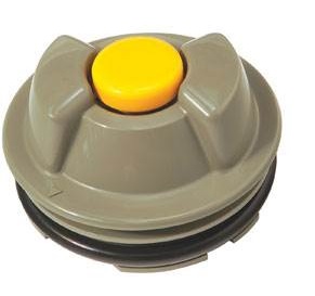 Tampão redondo cinzento com botão amarelo e anel preto