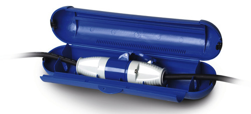 Caixa em plástico para protecção de fichas Schuko em côr azul.
