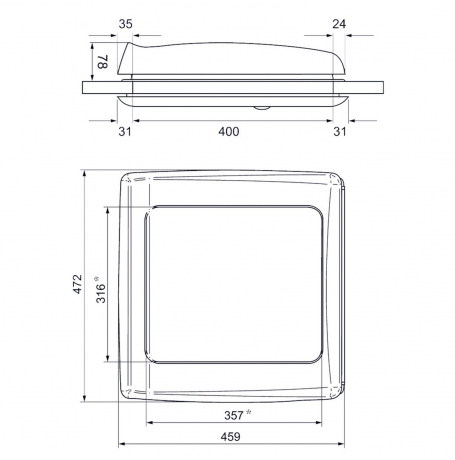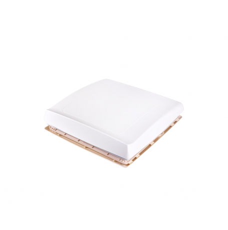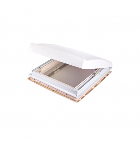 Claraboia Thule Vent 40X40 com tampa branca opaca e cortinas mosquiteira e escurecedora.