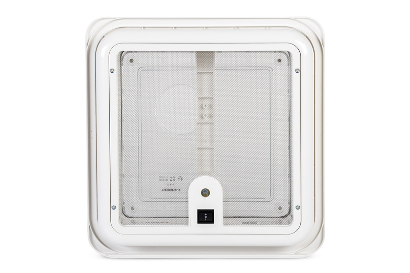 Claraboia com ventilação em cor branca tanto no interior como no exterior. Ideal para casa de banho ou espaços de tecto mais limitados em tamanho.