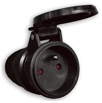 Ficha CEE Macho azul e ficha Schuko fêmea 2 pinos + terra com tampa em côr preta IP44 (ver imagem anexa)
