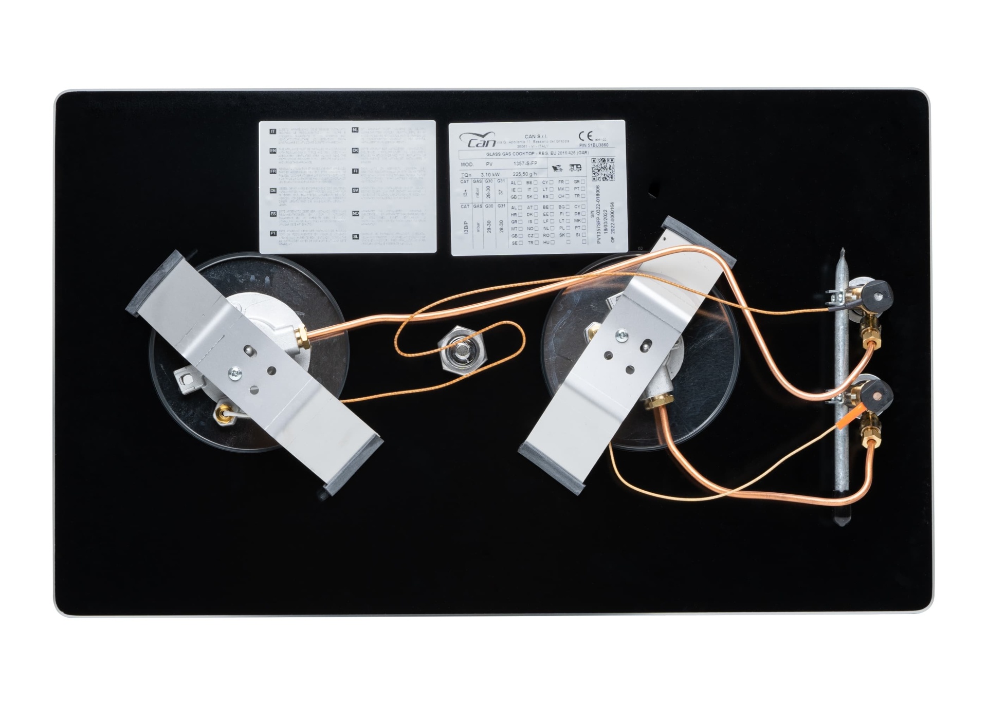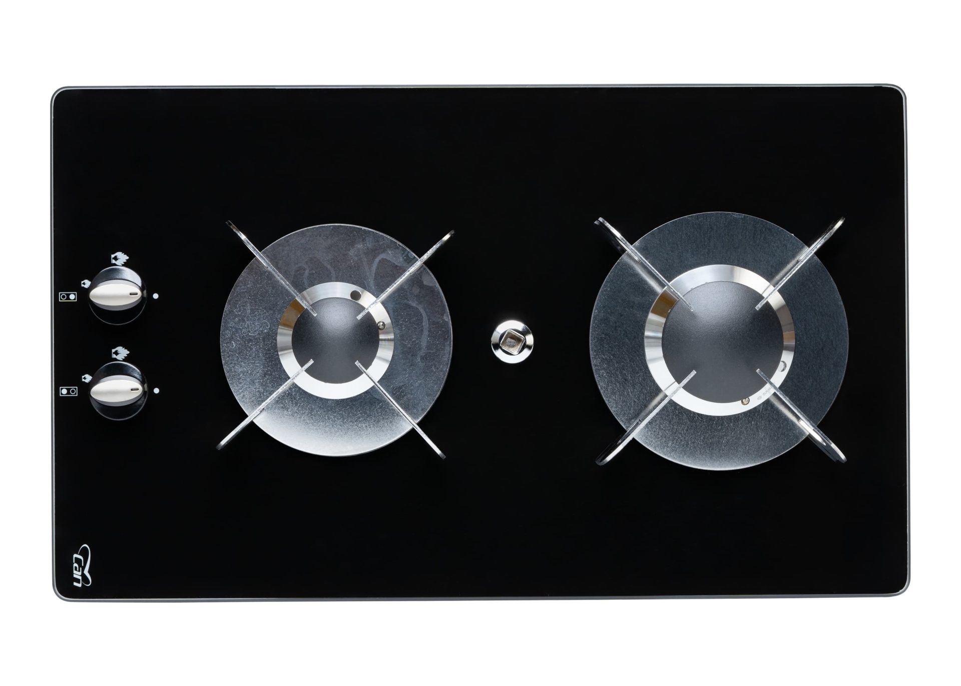 Fogão de encastrar CAN PV-1357 com 2 queimadores com base em vidro temperado anti riscos.