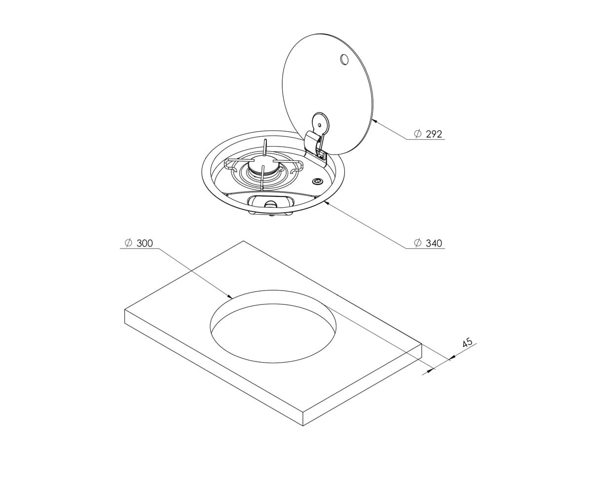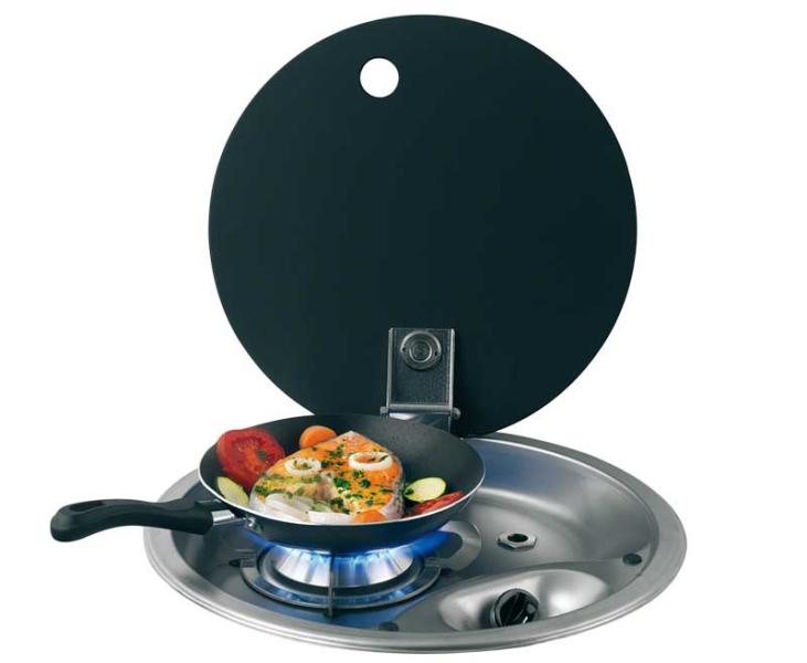 O fogão de encastrar em aço inoxidável FC1345 possui um queimador a gás, tudo num formato compacto, ideal para os espaços apertados da sua carrinha convertida, campervan ou barco.