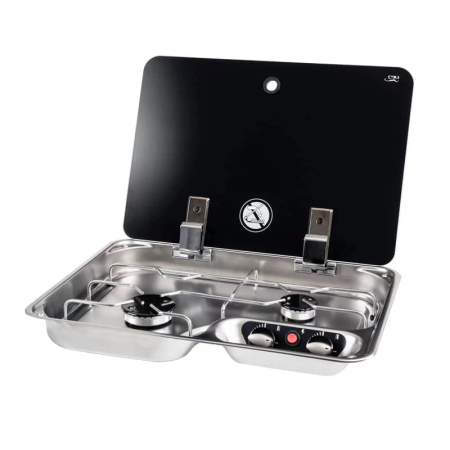 O fogão a gás CAN FC1346 é um aparelho compacto projetado para instalação embutida em autocaravanas, caravanas e barcos.