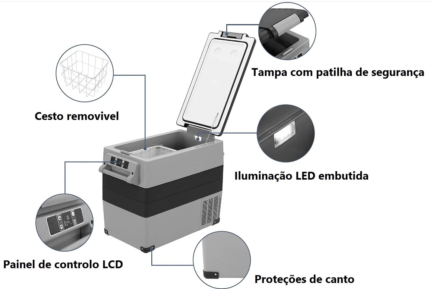 Geleira arca frigorifica CoolZone CF55, a compressor LG de alto rendimento com 55 litros de capacidade.