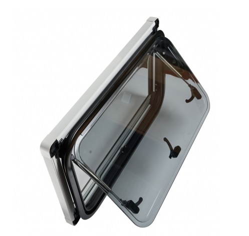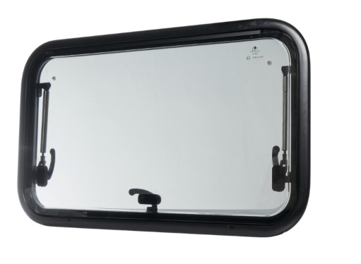 Janela lateral de projeção para autocaravanas e veiculos camperizados com estrutura fina de alumínio e bordas arredondadas