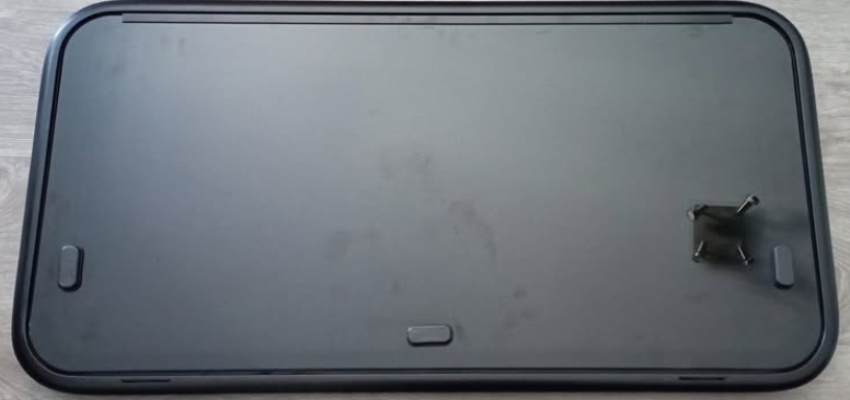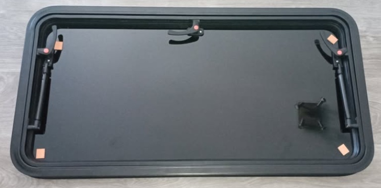 Conjunto de janela de projetar com vidro de segurança e kit escurecedor e mosquiteira interior.