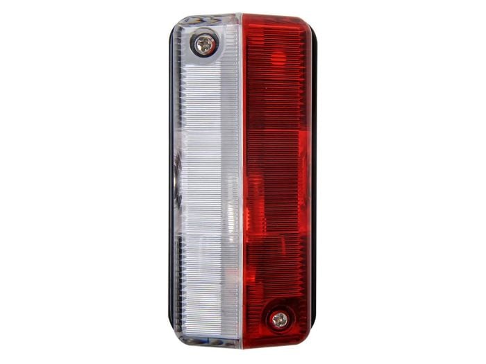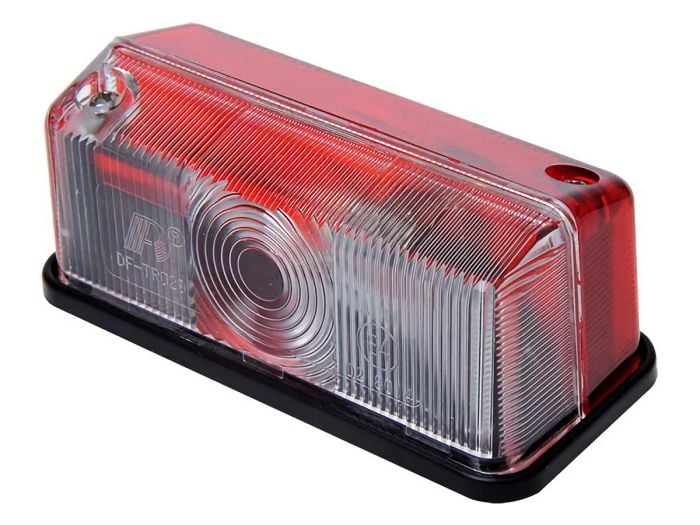 Luz traseira rectangular para veículo em plástico vermelho, branco e base preta