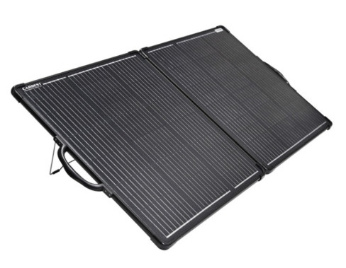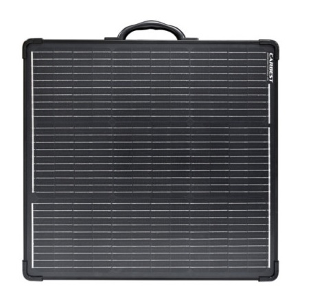 Painel solar portátil rígido que fechado tem o formato de uma mala, facilitando o seu transporte. Tem pegas rígidas de plástico, pés para inclinação e uma prática bolsa com compartimentos para guardar o painel e acesorios.