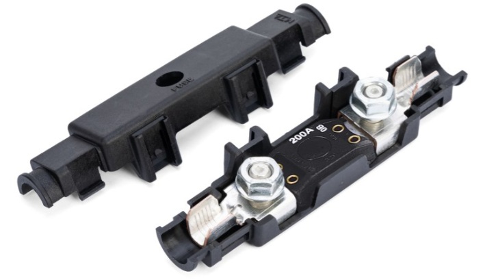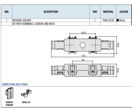 São fornecidos com terminais para cabos flexiveis com secção de até 25 a 35 mm² e suportam os fusiveis em posição com os pernos roscados M8 incluidos no conjunto (cravados) e também mantêm os pernos e porcas roscados M8.